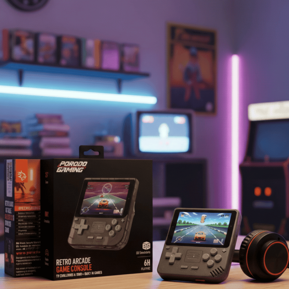 Step back in time with the PORODO Retro Arcade Handheld Game Console – your ultimate portable retro gaming powerhouse loaded with over 5000 built-in classic games and 19 emulators for non-stop nostalgia! Play timeless favorites from arcade cabinets, PS1, N64, GBA, NEOGEO, MAME, SFC, and beyond – all pre-installed and ready to go, no downloads required.