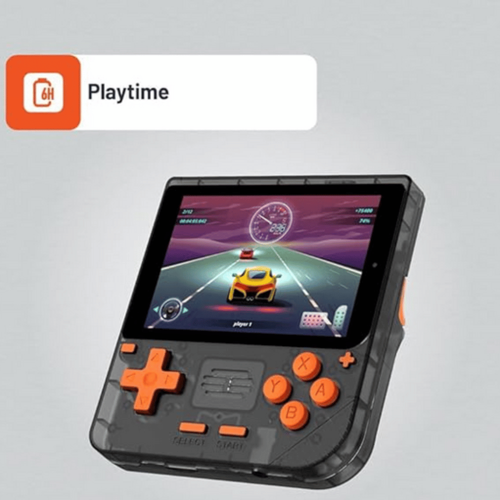 The stunning 3.5-inch IPS display with 60Hz refresh rate brings vibrant colors, sharp details, and smooth gameplay to life, while the ergonomic black/orange design with responsive controls (D-pad, A/B/X/Y, SELECT/START) feels comfortable for marathon sessions. Powered by a Quad-Core processor, 1GB RAM, and a 3000mAh rechargeable battery, it delivers up to 6 hours of playtime with fast Type-C charging in just 3 hours. Includes a 64GB TF card (expandable to 256GB) for all your games and saves.